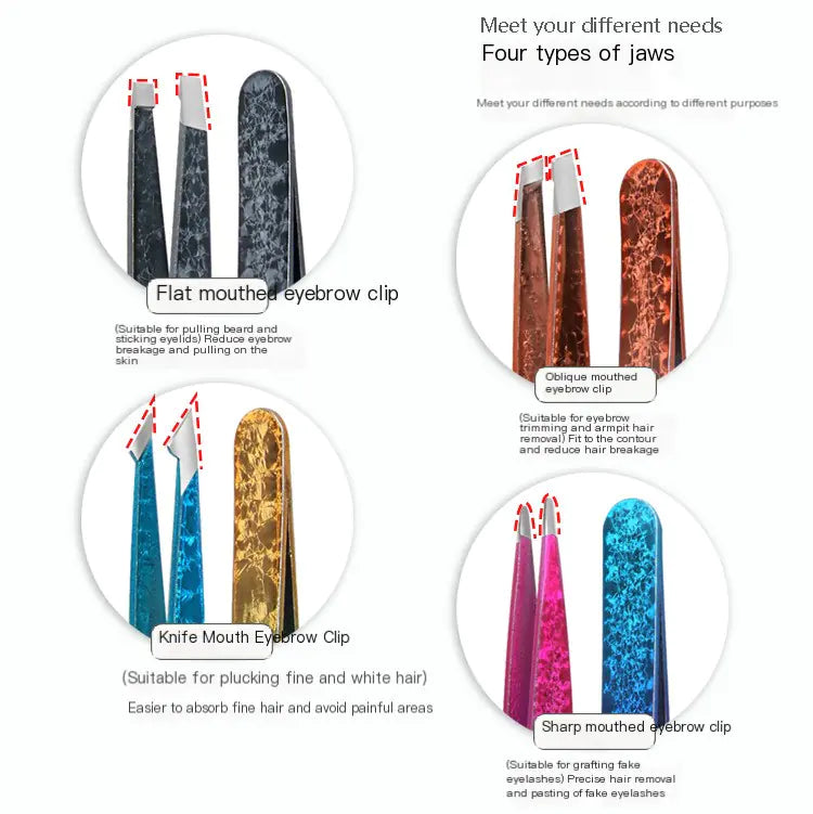 Introducing the ultimate beauty tool for your grooming routine – our Dual-Sided Stainless Steel Eyebrow Tweezers. This exquisite set is designed to elevate your beauty game, offering precision and versatility in one sleek package!