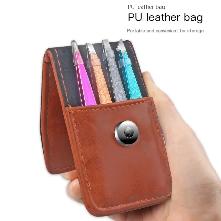Crafted from high-quality stainless steel, these tweezers promise durability and long-lasting use. Each set comes beautifully packaged in a PU leather bag, making it a perfect gift for beauty enthusiasts or a stylish addition to your own beauty arsenal.